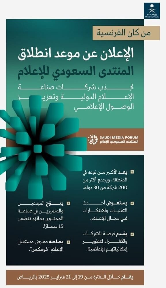 موعد انطلاق المنتدى السعودي للإعلام يعد الأكبر من نوعه في المنطقة، ويستعرض أحدث التقنيات والابتكارات